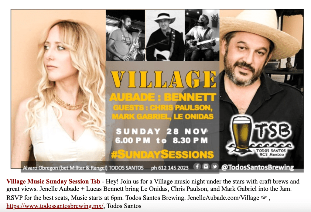 Village (Lucas & Jenelle) are back for #SundaySessions at Todos Santos Brewing and this week their entourage includes the talented Chris Paulson, Mark Gabriel and Le Onidas. With a great range of originals and covers …. Village and their crew always guarantee an amazing performance.