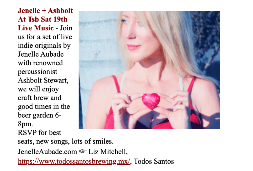 JenelleAubade.com for upcoming music dates in March.