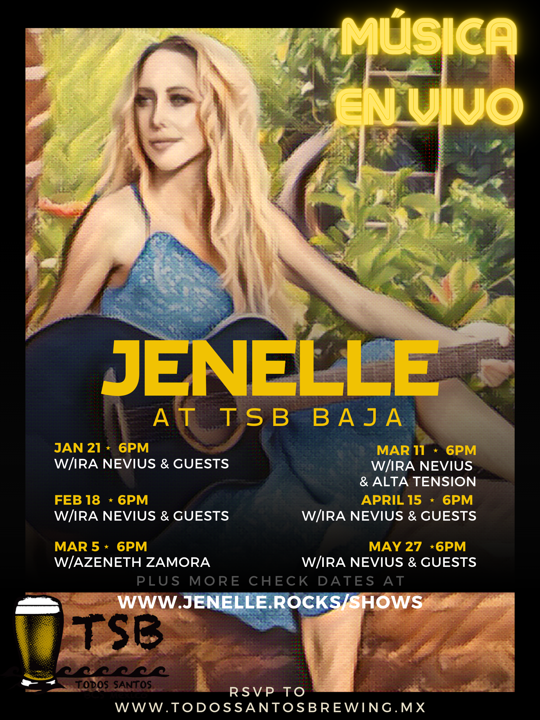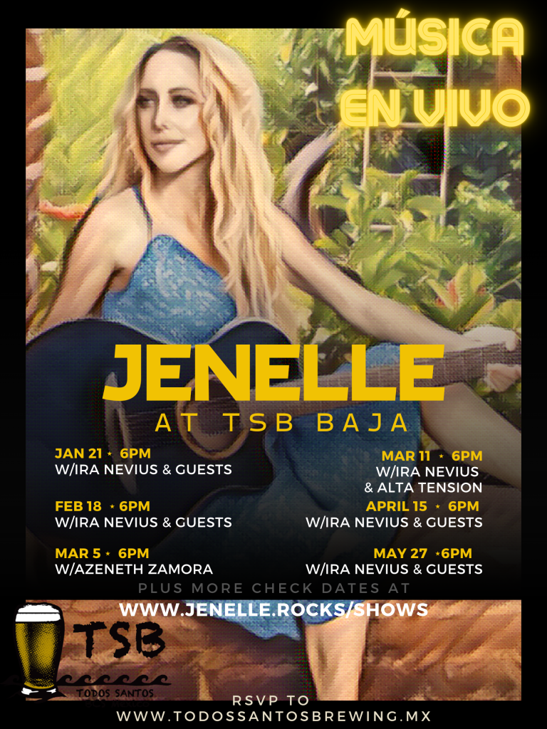 And January 21st, Saturday night jam at Todos Santos Brewing, I am bringing some fun friends to this one. Ira Nevius opens with his Baja Originals, Poet Charlotte Eulette reads some exciting intrigue into our evening, Ted Mitchell plays a fun set of originals and tributes, we have a couple of super cool secret guests popping in after that, then I play us a solo set to finish the show.